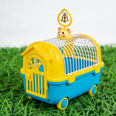 Kaip parodyta mėlynai geltoname naminių gyvūnėlių narvelyje, specialiai sukurtame mažiems augintiniams, su miela pelės galvutės puošmena ir auksiniu varpeliu. Didmeninė kaina 12–15 USD už vienetą (pagal MOQ), minimalus užsakymas 100 vienetų, palaikomas funkcijų pritaikymas ir privatus ženklinimas.